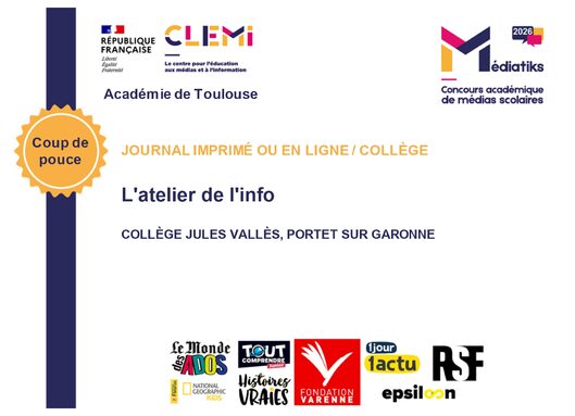 Par admin jules-valles, publié le jeudi 16 avril 2026 16:52 - Mis à jour le vendredi 17 avril 2026 16:29Coup de pouce du jury du concours Médiatiks à l'atelier médias -