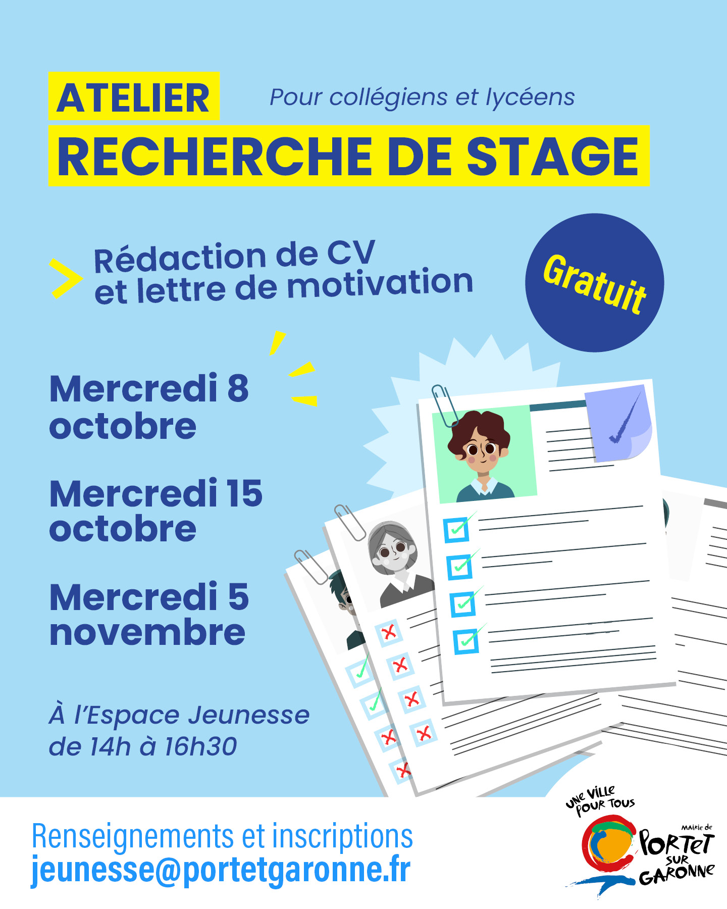 Un atelier d'aide à la recherche de stages est organisé par le service jeunesse de la mairie de Portet sur Garonne